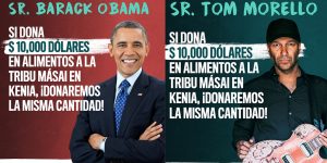 Actualmente, dicha organización desafía al ex presidente Barack Obama, a la actriz Lupita Nyong’o y al músico Tom Morello – todos ellos con ascendencia keniana – para que apoyen su trabajo a través de la donación de 10 mil dólares a este programa de ayuda alimentaria.